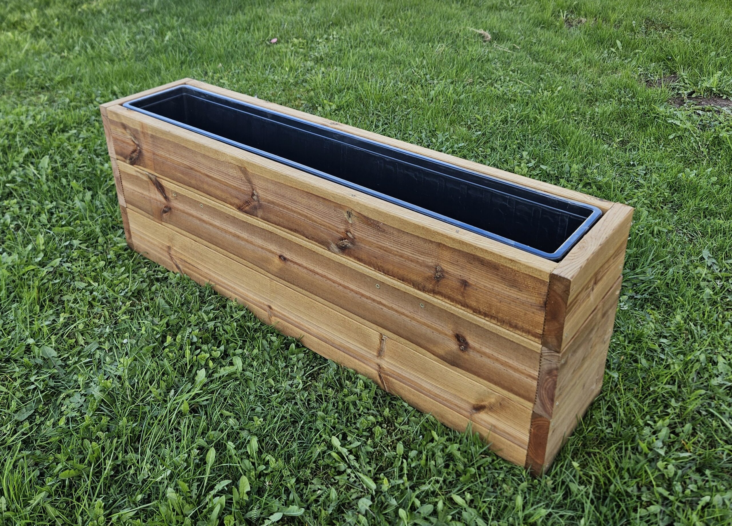 Immutatud terrassilauast taime- lillekasti komplekt, sisaldab plastsisu.