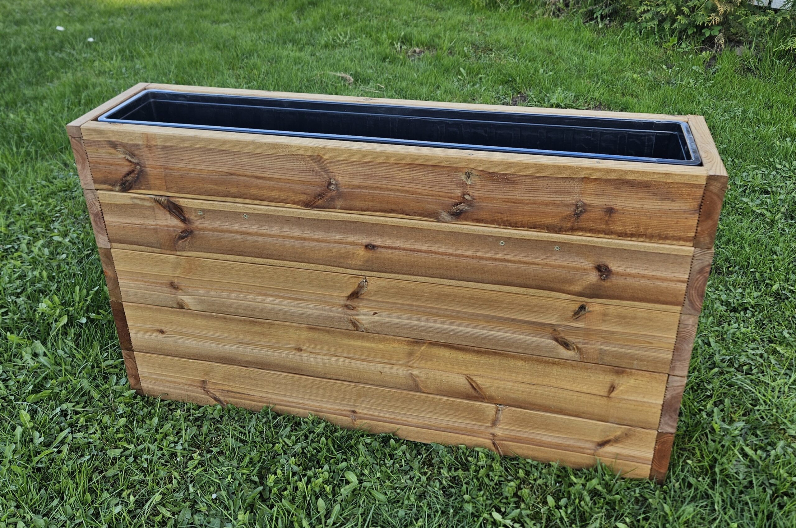 Immutatud terrassilauast taime- lillekasti komplekt, sisaldab plastsisu.