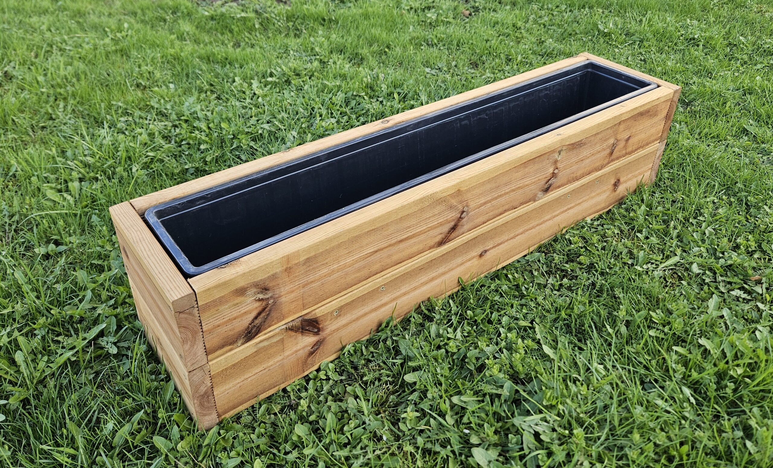 Immutatud terrassilauast taime- lillekasti komplekt, sisaldab plastsisu.