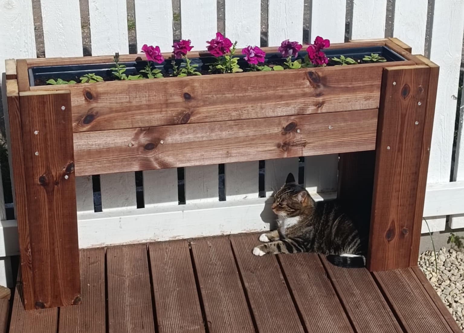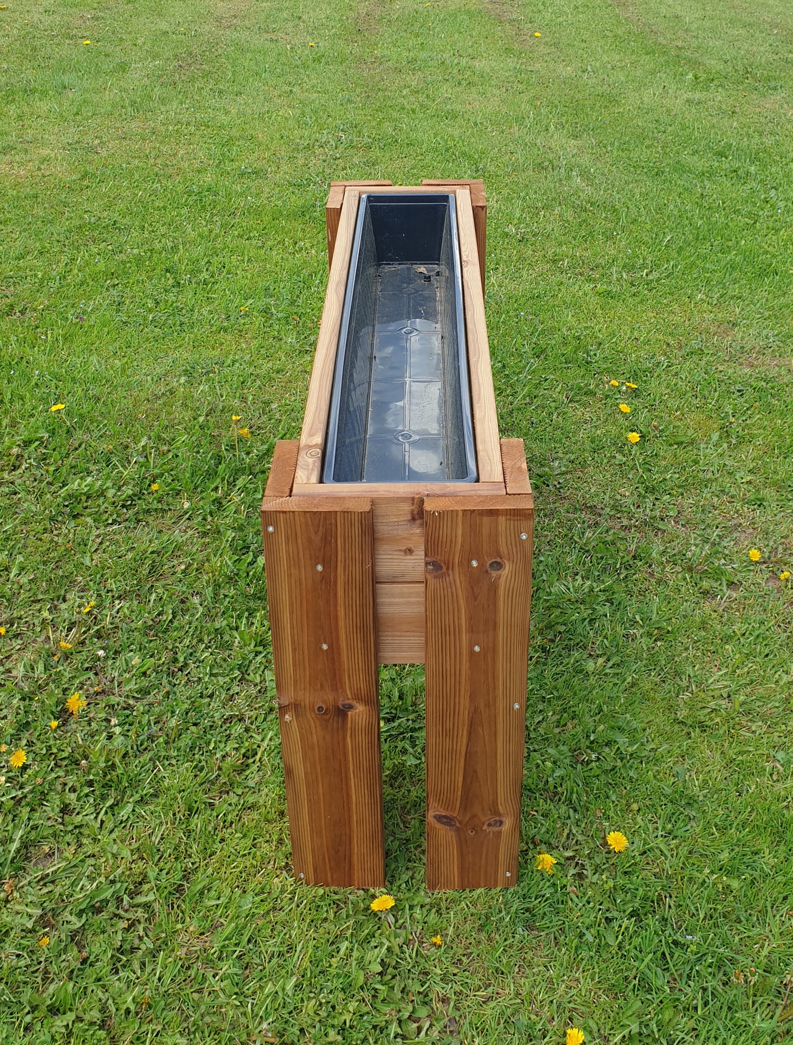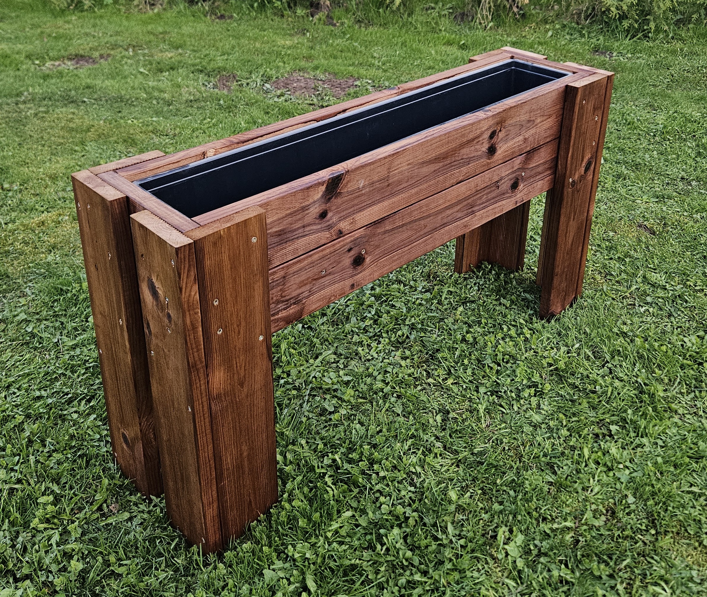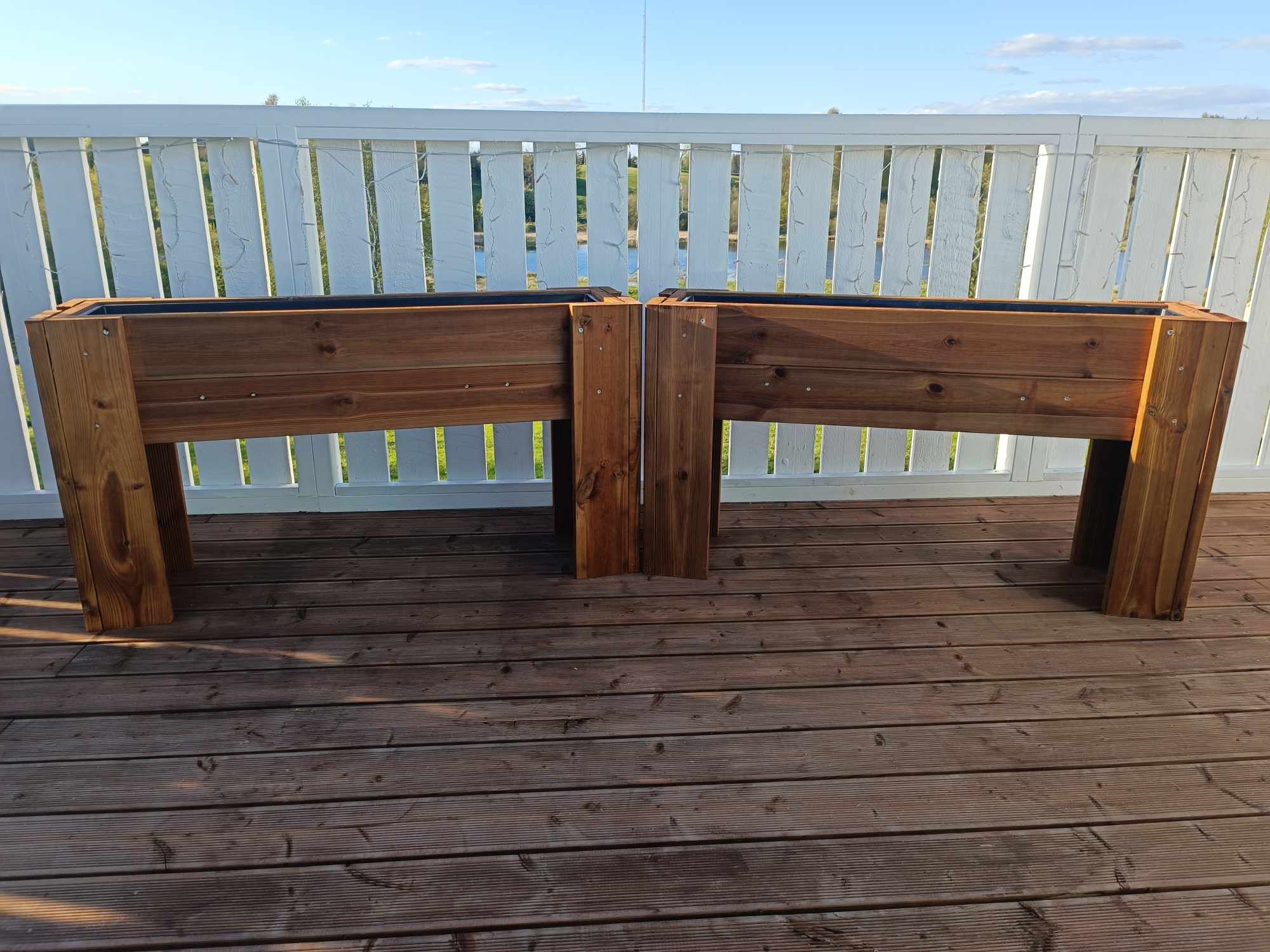 Immutatud terrassilauast taime- lillekasti komplekt, sisaldab plastsisu.